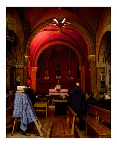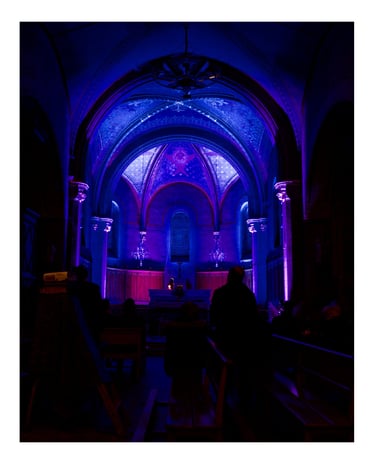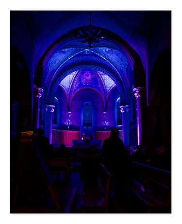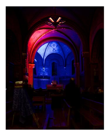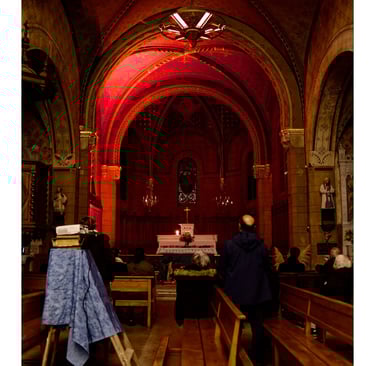 La mise en lumière du chœur de l’église était assurée par Charlotte Huart, dont le talent a ajouté une dimension spectaculaire à l’ensemble. Les jeux de lumière ont transformé l’espace sacré, créant une atmosphère à la fois mystérieuse et apaisante. Ensuite, Guy Barbier a pris le relais en animant une visite guidée inspirante, ponctuée de questions réponses avec le public. Les échanges étaient riches et les participants ont pu approfondir leur compréhension de l'importance de la culture et de l’histoire de notre région.